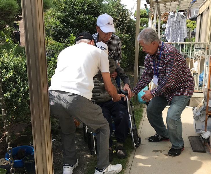 玄関先から車椅子に乗って少しの距離を移動するまでを、実際にサポート隊で支援しました。初めての試みでしたが、避難の際、通行に妨げとなる場所がわかり、お互いの意思疎通も図れ、実りある一歩であったことは間違いありません。