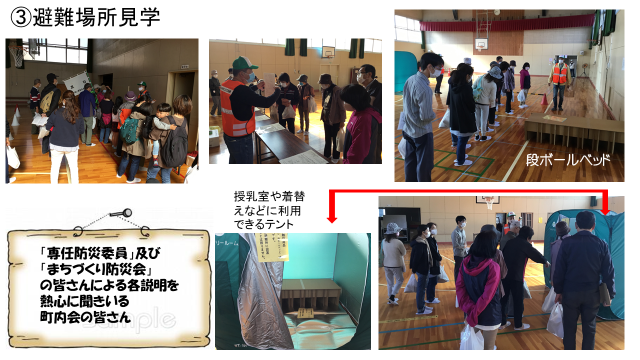 防災訓練内容も規模縮小し内容も変更致しましたが、避難所開設した場合の想定されるスペースを確認頂くことは