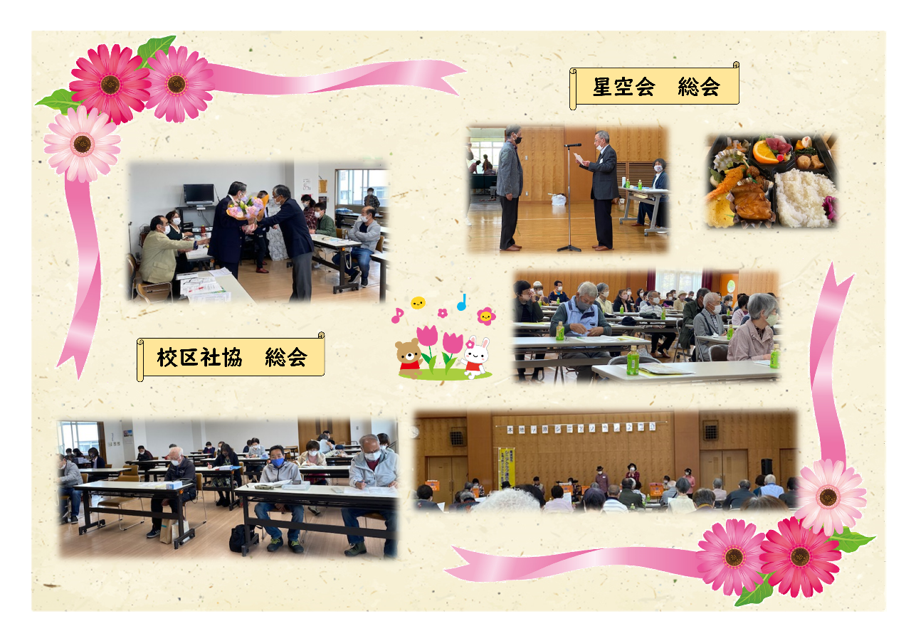 29日は校区社協、30日はシニアクラブ星空会の総会にお招きいただきました。 無事、総会が開催に至りましたことをお喜び申し上げます。 会員皆さまの益々のご健勝と、会のご発展をお祈り申し上げます。