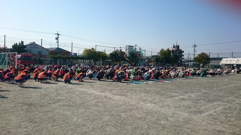 快晴の空の下、本地ヶ原校区自主防災訓練が開催されました。参加者約400名、中学生ボランティア35名、協力団体スタッフ約80名と多くの方にご参加いただき、「お助け不要の無事タオル作戦」の参加は約1,000軒にもなりました。今年は本地原小学校に新たに導入された「マンホールトイレ」の設置訓練も体験訓練に取り入れ、中学生のボランティアも募集し大変有意義で地域を挙げての防災訓練になりました。