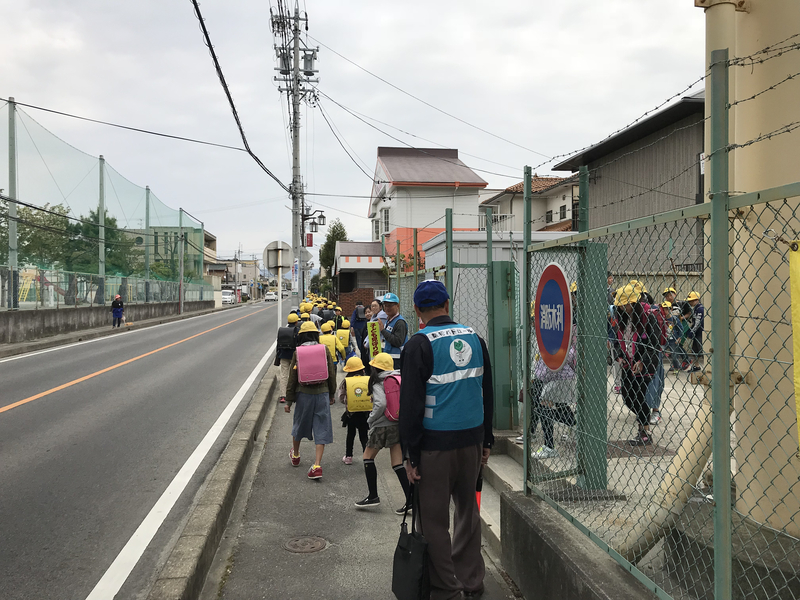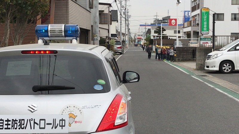 09青パトクーちゃん号と下校中の本地っ子.jpg