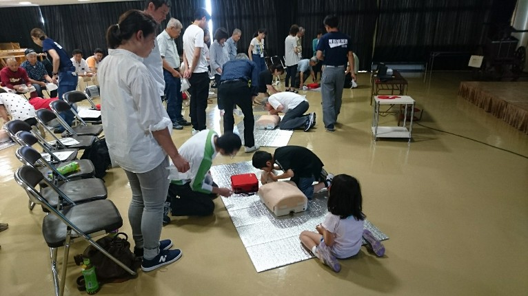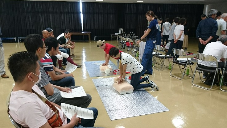 参加者36人と予想以上の沢山の方にお集まりいただき、消防署員の指導のもと、実際の救命活動を学びました。 この経験が実生活で生かされ、一人でも多く、救える命を救う手助けができるといいなと思います。 お子さまの参加もあり、とても和やかな講習会となりました。今後もこのような講習会に積極的に参加していただけることを期待しています。
