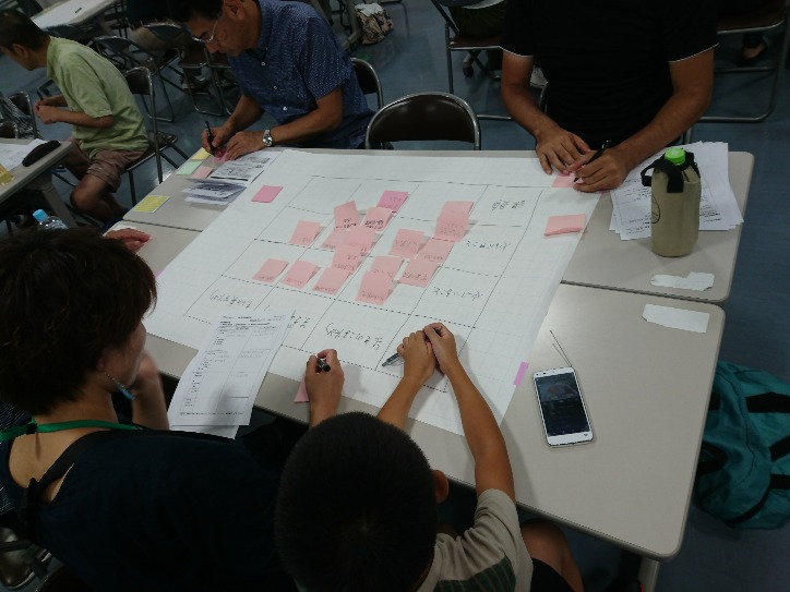 三重大学川口先生によるワークショップが行われました。 「生き残るため」「生きのびるため」「生活を立て直すため」という視点で、グループに分かれ話し合いました。 今自分たちができている事、これからやるべき事を見直すことができました。 今年度、来年度への課題も検討できたのではないかと思います。