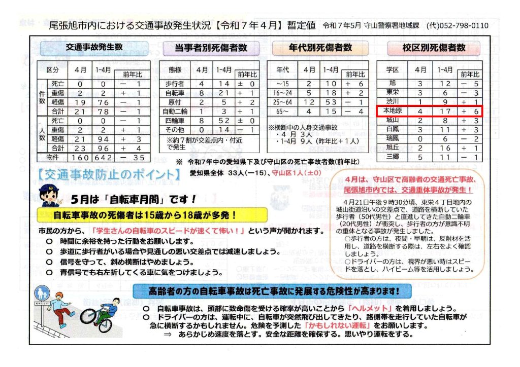 尾張旭市 犯罪/交通事故発生状況(令和7年4月)