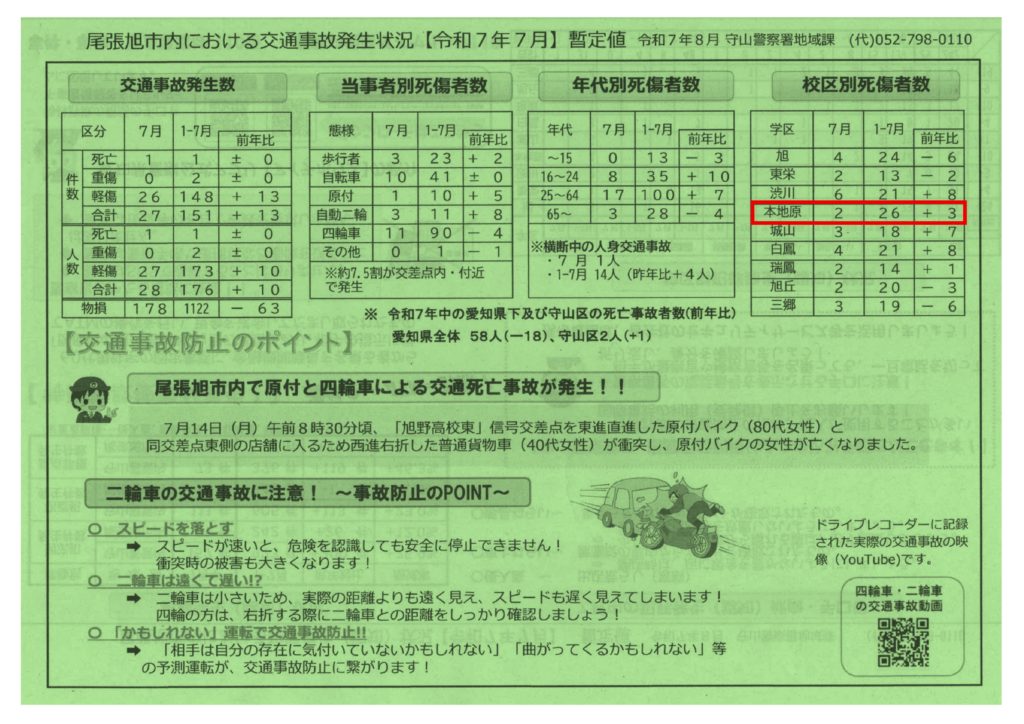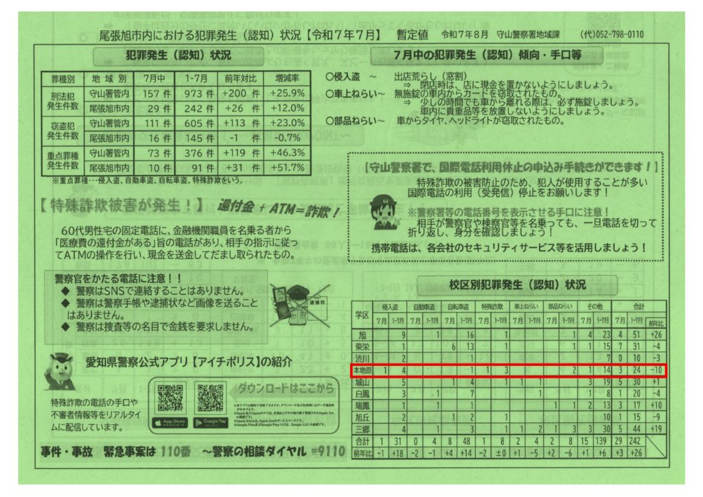 尾張旭市 犯罪/交通事故発生状況(令和7年7月)
