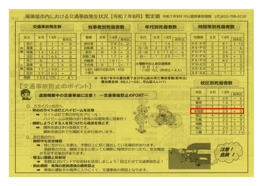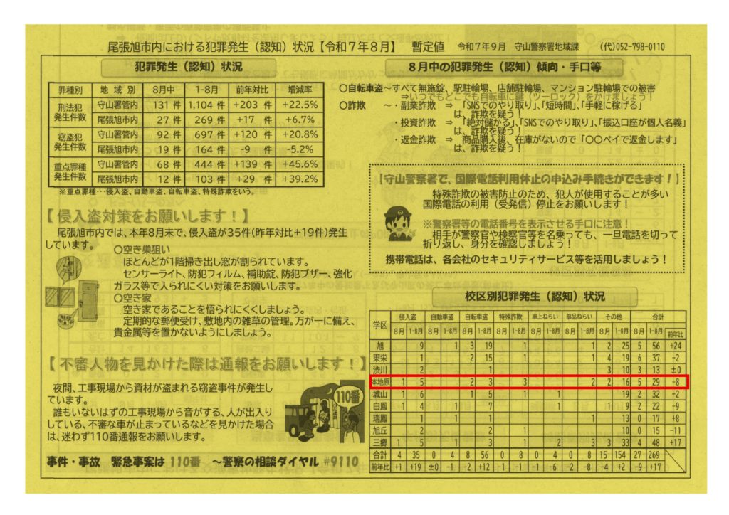 尾張旭市 犯罪/交通事故発生状況(令和7年8月)
