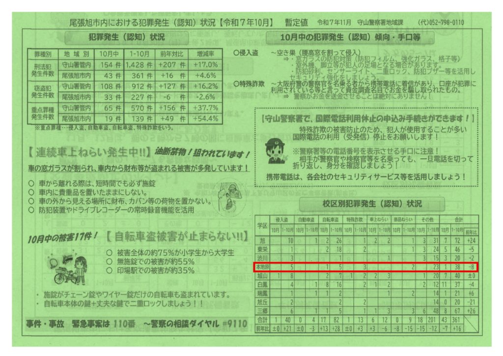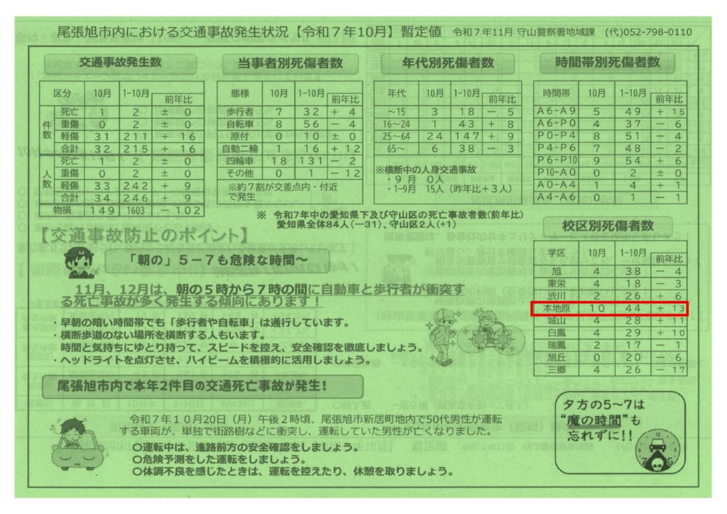 尾張旭市 犯罪/交通事故発生状況(令和7年10月)