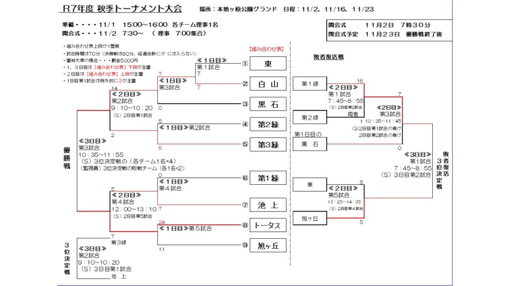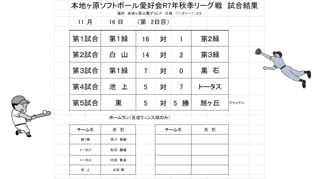 ソフトボール愛好会 秋季トーナメント大会2日目結果