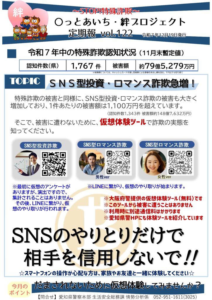 「〇っとあいち・絆プロジェクト」定期報No.122⚠️