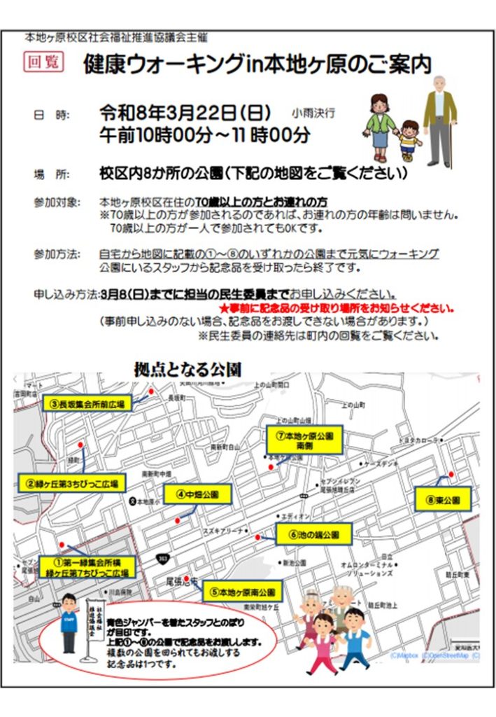 「健康ウォーキング㏌本地ヶ原」のご案内(社協主催)