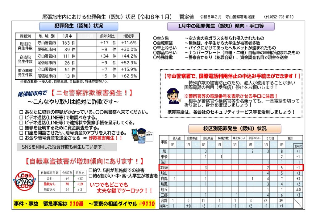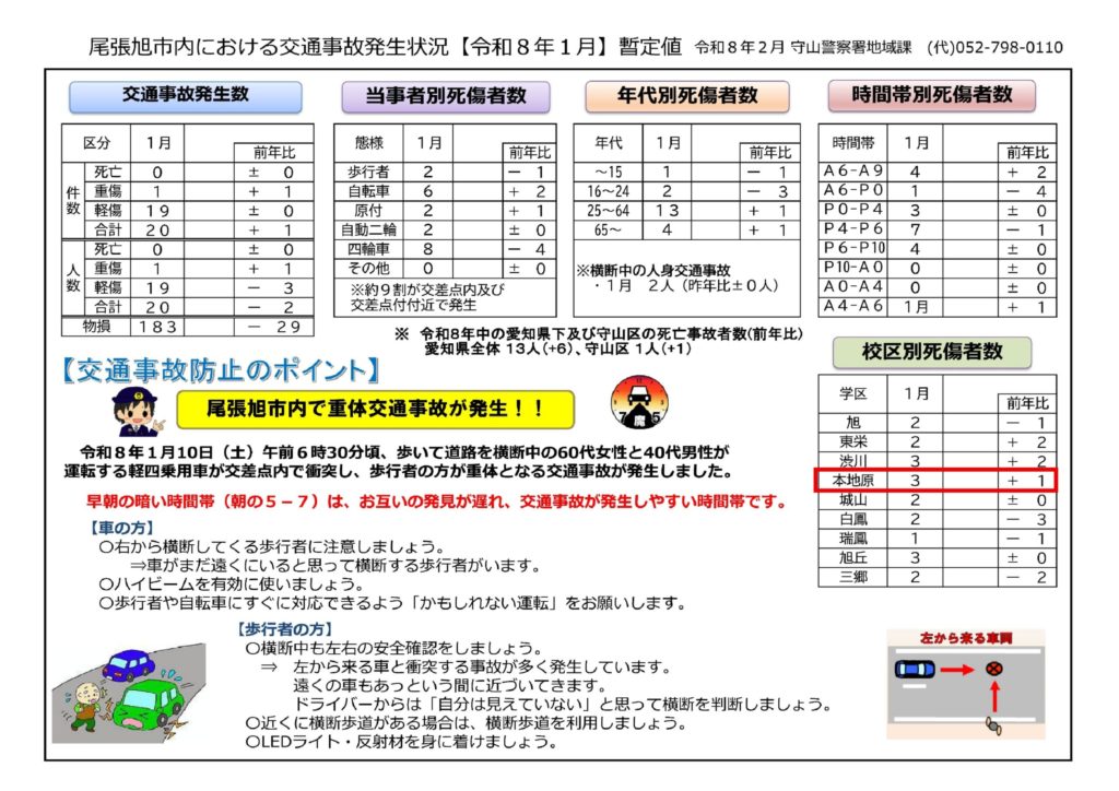 尾張旭市 犯罪/交通事故発生状況(令和8年1月)