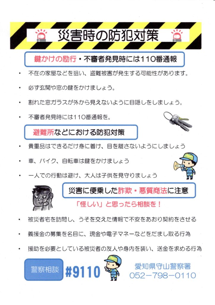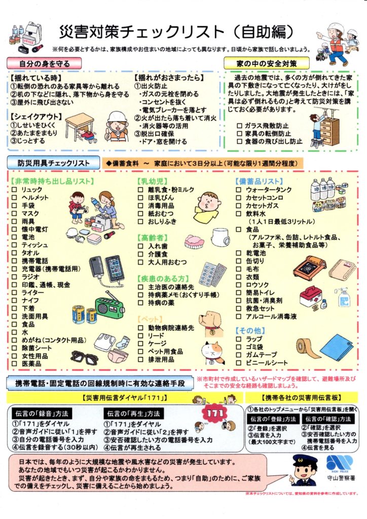 「災害時の防犯対策」と「災害対策チェックリスト」